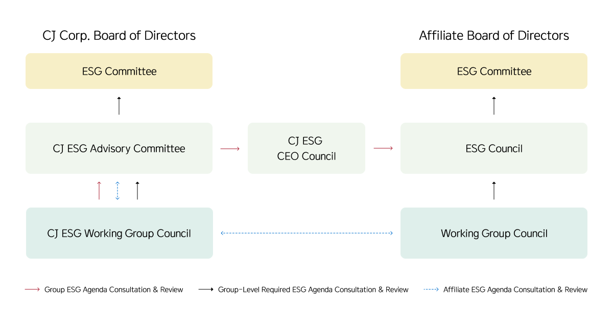 CJ Group prioritizes responding to climate change, implementing a circular economy, respecting human rights, promoting DE&I (Diversity, Equity & Inclusion), and managing the supply chain. We will execute the group's ESG (Environmental, Social, and Governance) management and continuously communicate about the sustainable future of the group with our customers, employees, shareholders, suppliers, and the local community.