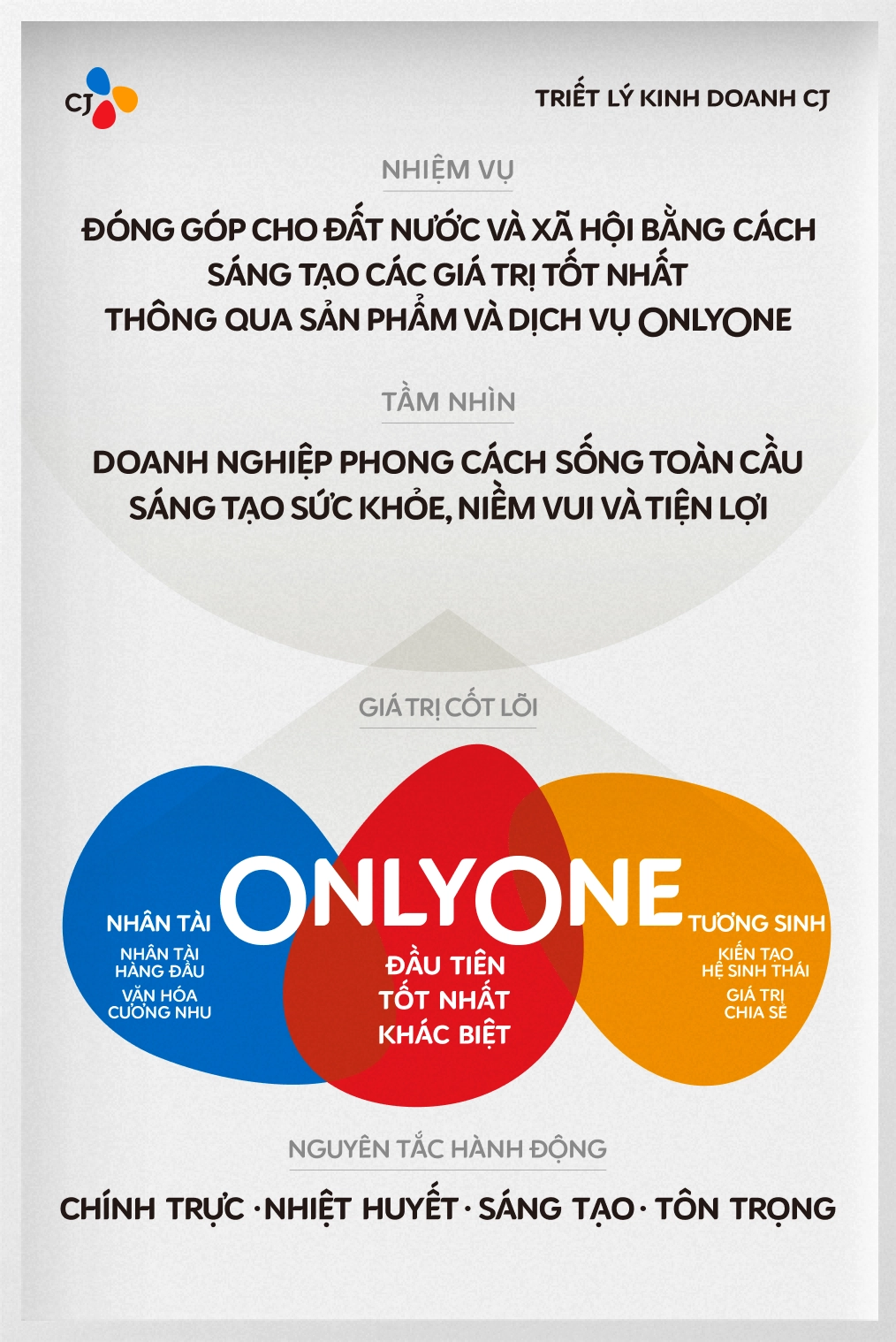 Giá trị ưu tiên nhất của tinh thần ONLYONE mà CJ theo đuổi chính là "ĐẦU TIÊN, TỐT NHẤT, KHÁC BIỆT"